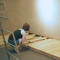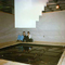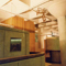 This space consists of 2 identical squarish areas /rooms with rounded corners while walls do not reach the ceiling. In the centre stands a wooden construction, which reaches the ceiling and which served, originally, as a tool cabinet.