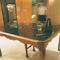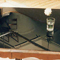 Burnt engine oil, laundry detergent, wooden flooring, chair, table, gradient construction, metronome, wax figurine.