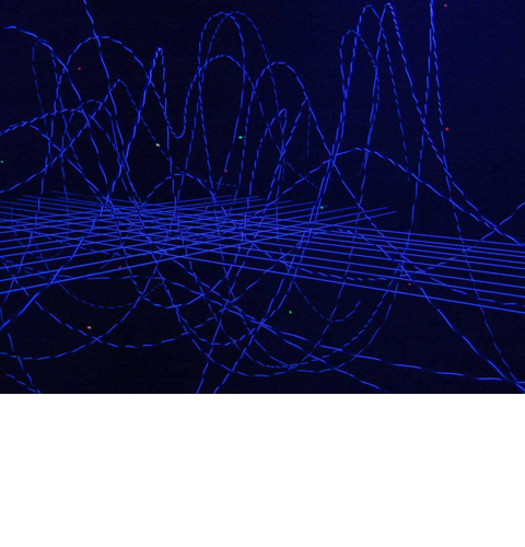 Black light, metal chord, cotton string, laundry detergent, fluorescent clay, variable dimensions
